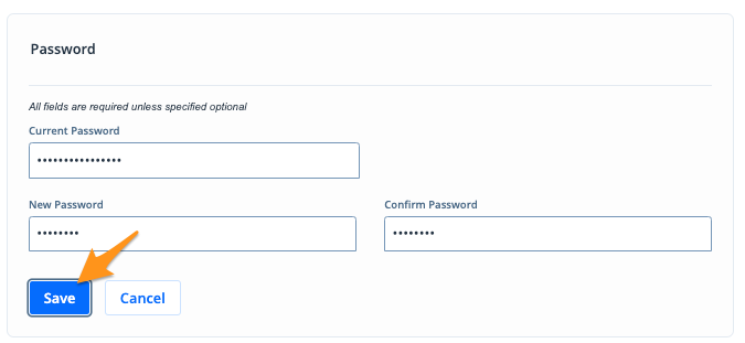 4. Enter your current password then enter and confirm your new password and click Save