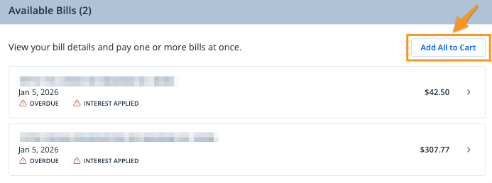 1. Under the "Available Bills" section, click Add All to Cart