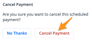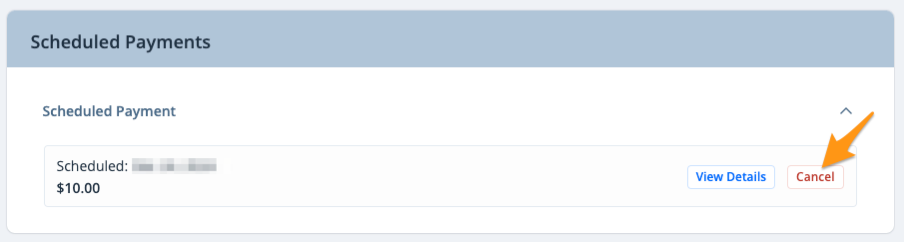 2. Scroll down to the "Scheduled Payments" section and click Cancel next to the applicable scheduled payment